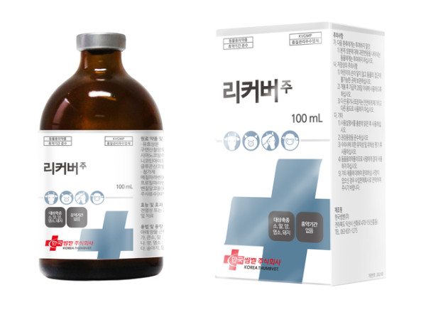 리커버주의 용법 및 용량은 큰소, 말 20mL, 송아지, 큰돼지 10mL, 육성돈 5mL, 중소동물의 경우 체중 10kg당